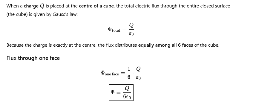 Question: A charge Q is placed at the centre of a cube. The electric flux through one if its face is (CBSE 2023)